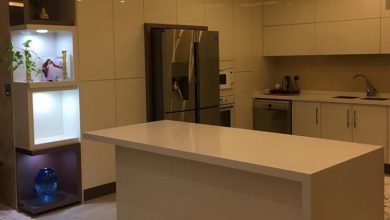 5 عکس از کابینت آشپزخانه ایرانی مدرن سه رنگ با جزیره
