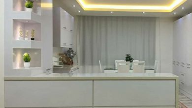 5 عکس از کابینت مدرن سفید نما با اپن و ویترین دکوری